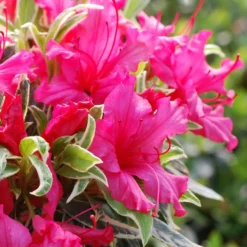 avec un feuillage très décoratif et frais, cette azalée attire les regards toute l’année et c’est sans compter sur une floraison vive qu’elle resplendit au printemps. Elle apporte déjà une note estivale. Ses grandes fleurs roses sont pétillantes. Une très belle harmonie avec le panaché de ses feuilles. Idéal pour les petits espaces et la culture en pot !
