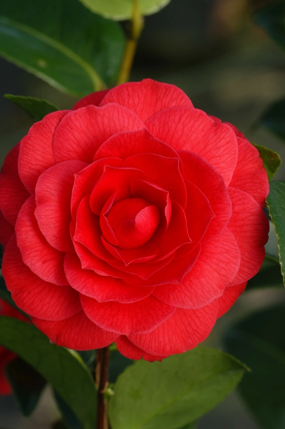 (semis entre c. Williansii ‘donation’ x c. Reticulata ‘crimson robe). De vigueur moyenne, son port est compact, son feuillage vert foncé. Les pétales en s’imbriquant forment une belle ombre qui donne encore plus de profondeur au rouge cramoisi de sa petite fleur. Peut se palisser.
