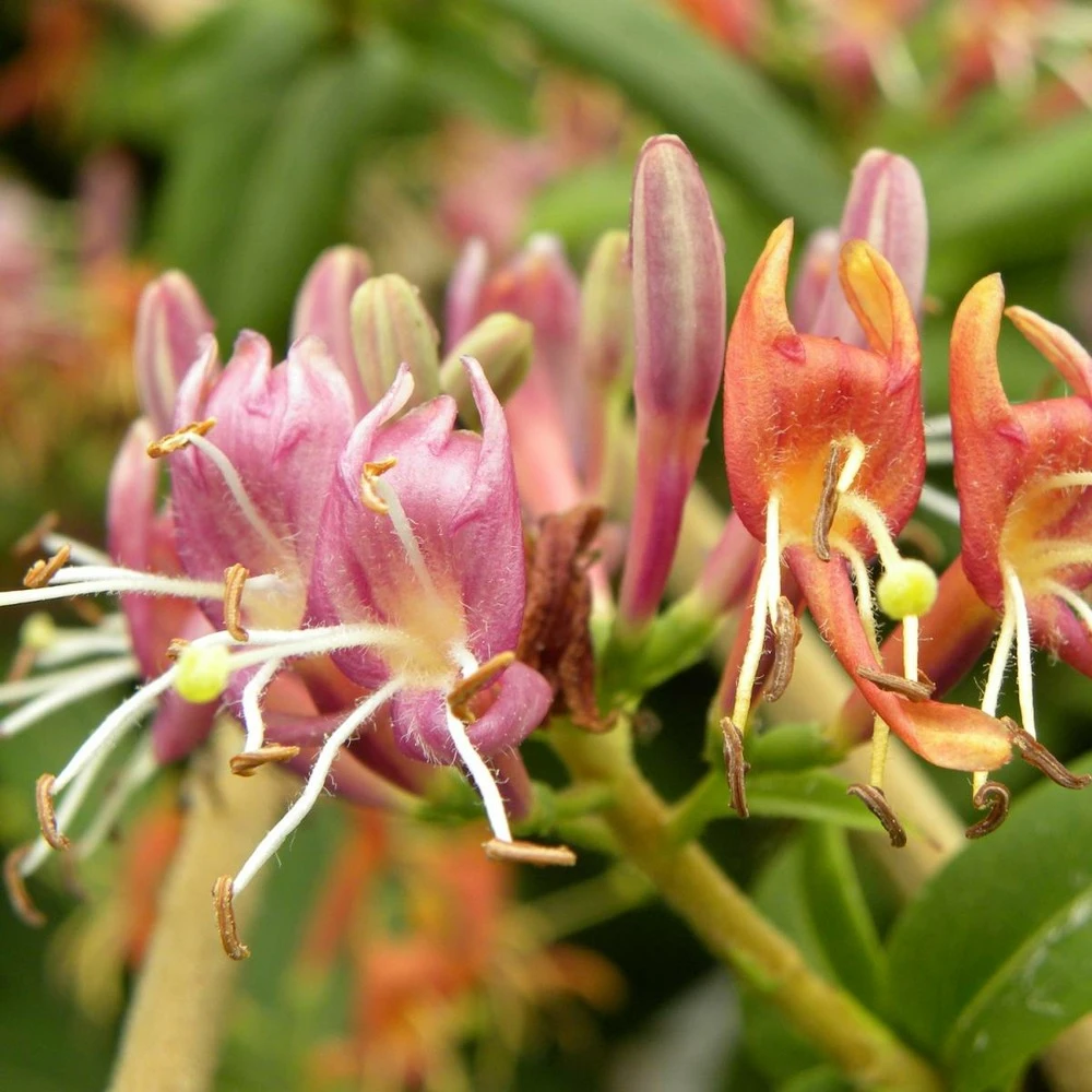 cette espèce de chèvrefeuille est considéré à juste titre par beaucoup comme plante de collectionneur. On met souvent à profit ce lonicera pour son feuillage persistant. ses feuilles lancéolées, lisses et brillantes, sont de couleur verte. Ses fleurs rose saumon se groupent aux extrémités des pousses.